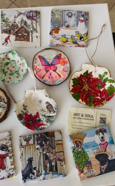 Each workshop offers guided art activities focused on creative art making to take you on a journey of self-discovery, healing, and to express through art what has not been expressed through words.